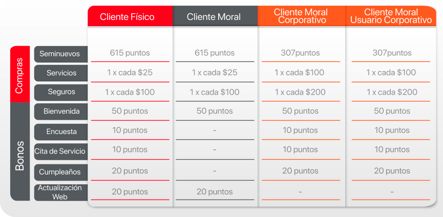 Los puntos tienen vigencia de 24 meses para personas físicas y 12 meses para personas morales. Clientes que no presenten actividad en 12 meses en los departamentos participantes dentro de las concesionarias Honda su cuenta será inactividad y se perderá el total de puntos acumulados al momento.